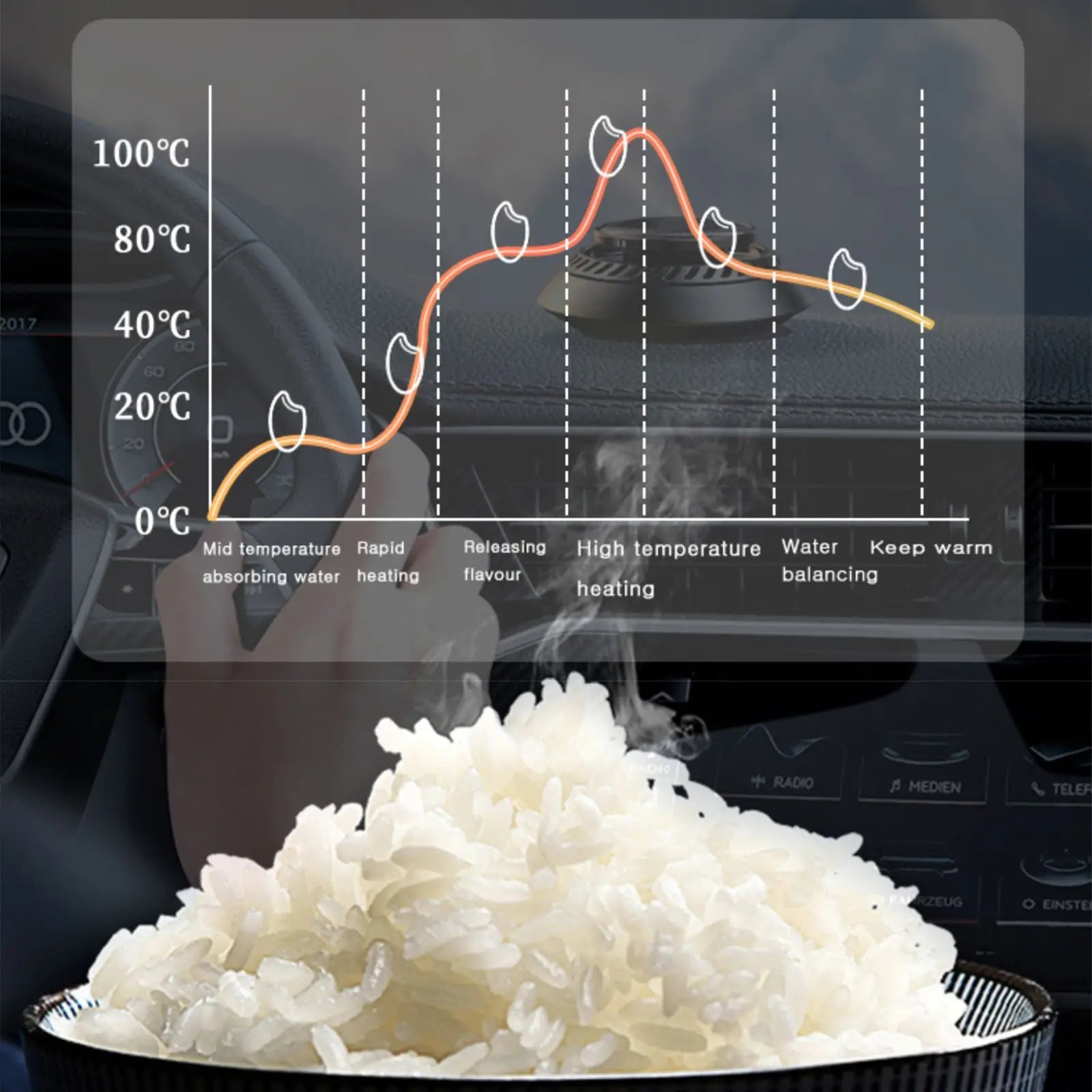 2. High quality materials: 100% new car rice cooker is made of food-grade PP material, which does not produce any harmful substances when heated and is safe to use.
