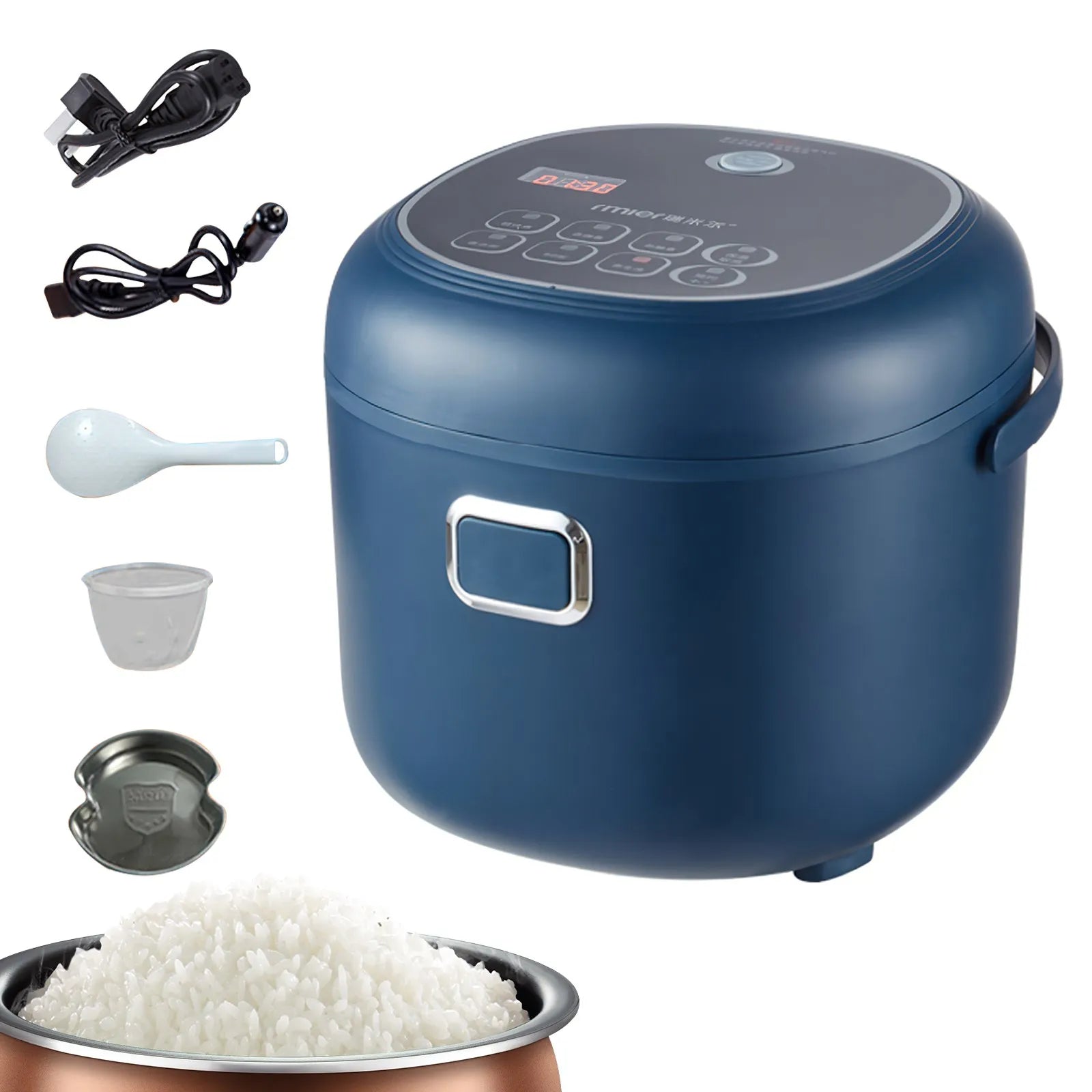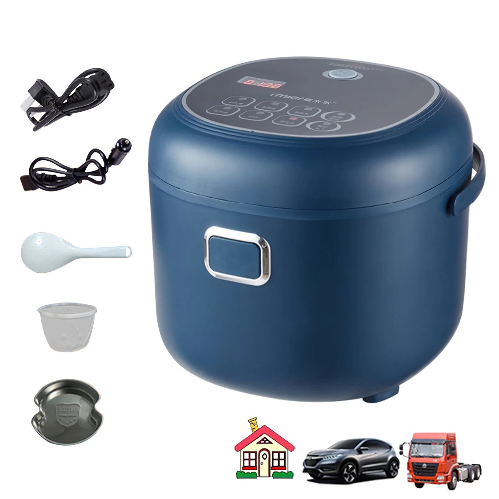 1. Use: car rice cooker is suitable for home and truck, commonly designed for cooking rice, porridge, dense eggs, hot dishes. Capacity: 2L