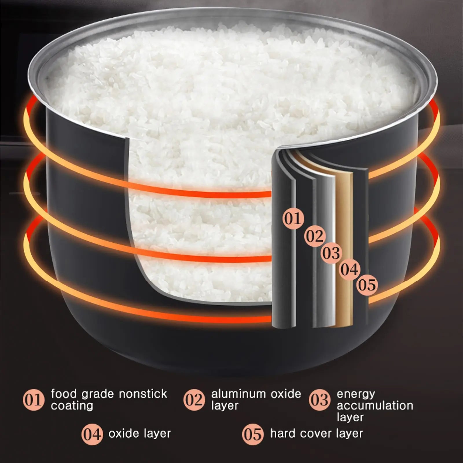 1. Durable and easy-to-clean materials: The cooking is made with an aluminum alloy and non-stick coated inner pot, ensuring both durability and ease of cleaning, making it perfect for daily use